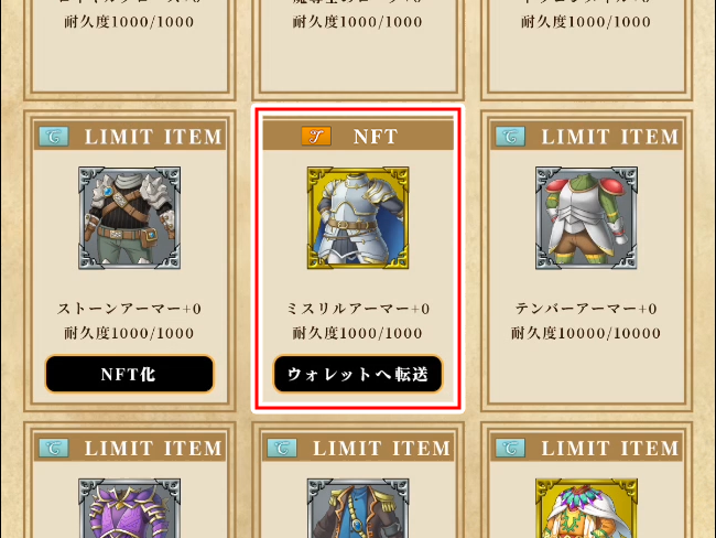 🔁 装備NFTをウォレット転送する方法 を参照してください。