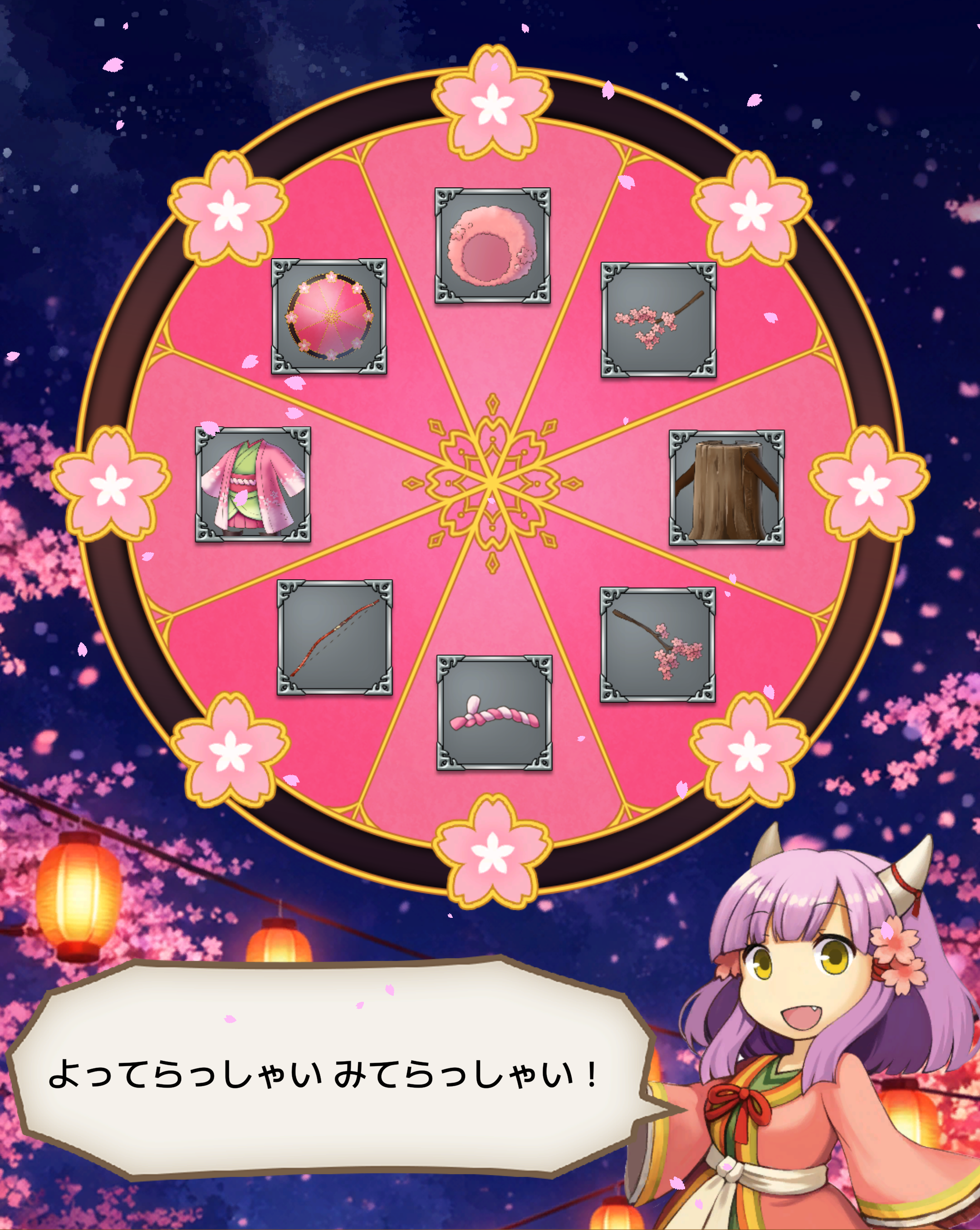 集めた桜の花はイベントルーレットで使用することができます。