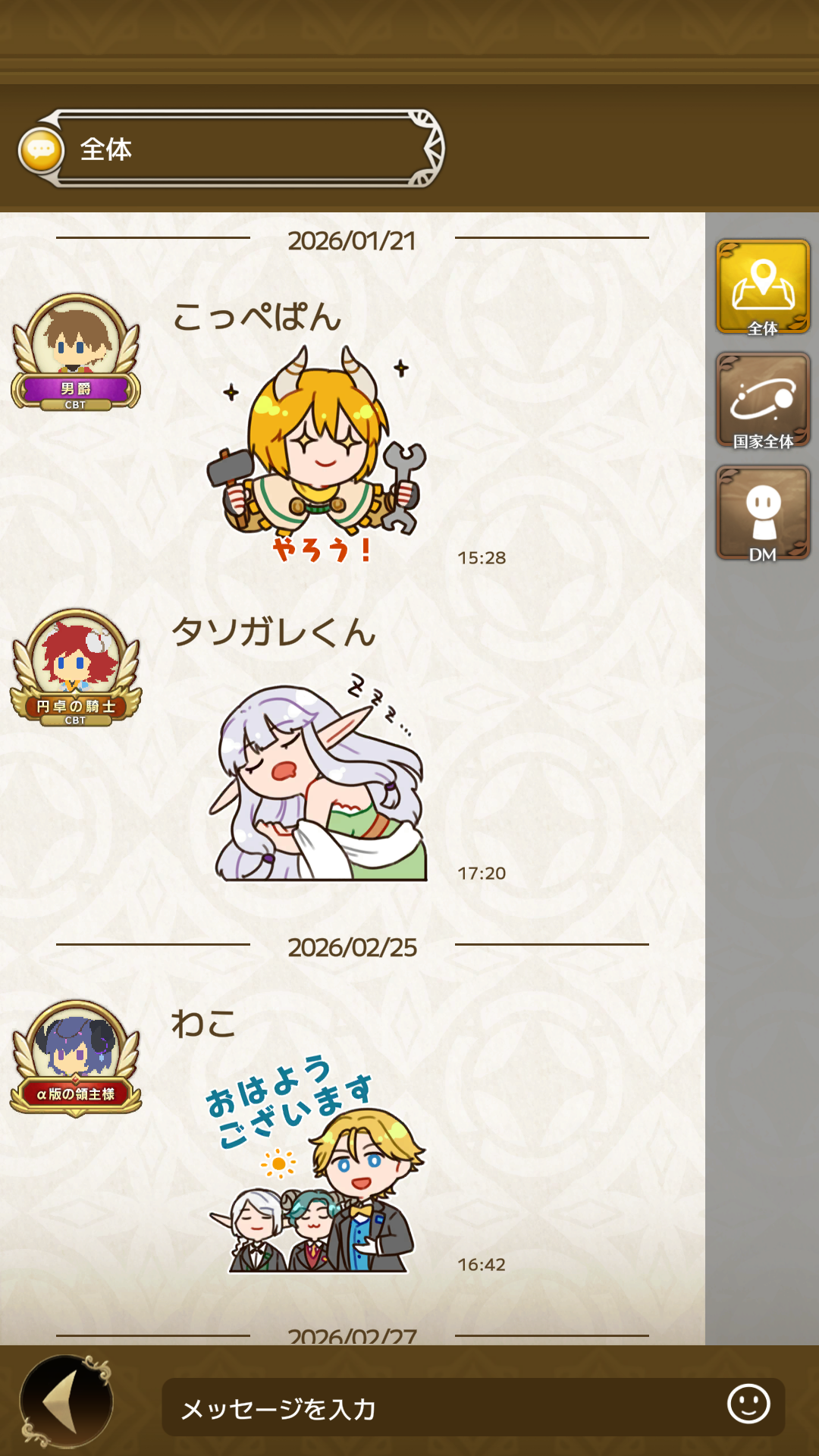 騎士団に加入するとメンバーとメッセージでコミュニケーションをとることができます。