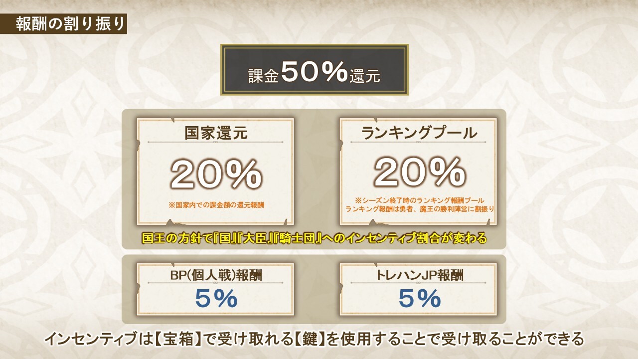 魔王国の勝利ではランキングプールから魔王騎士団、魔王国に報酬が割り振られます。