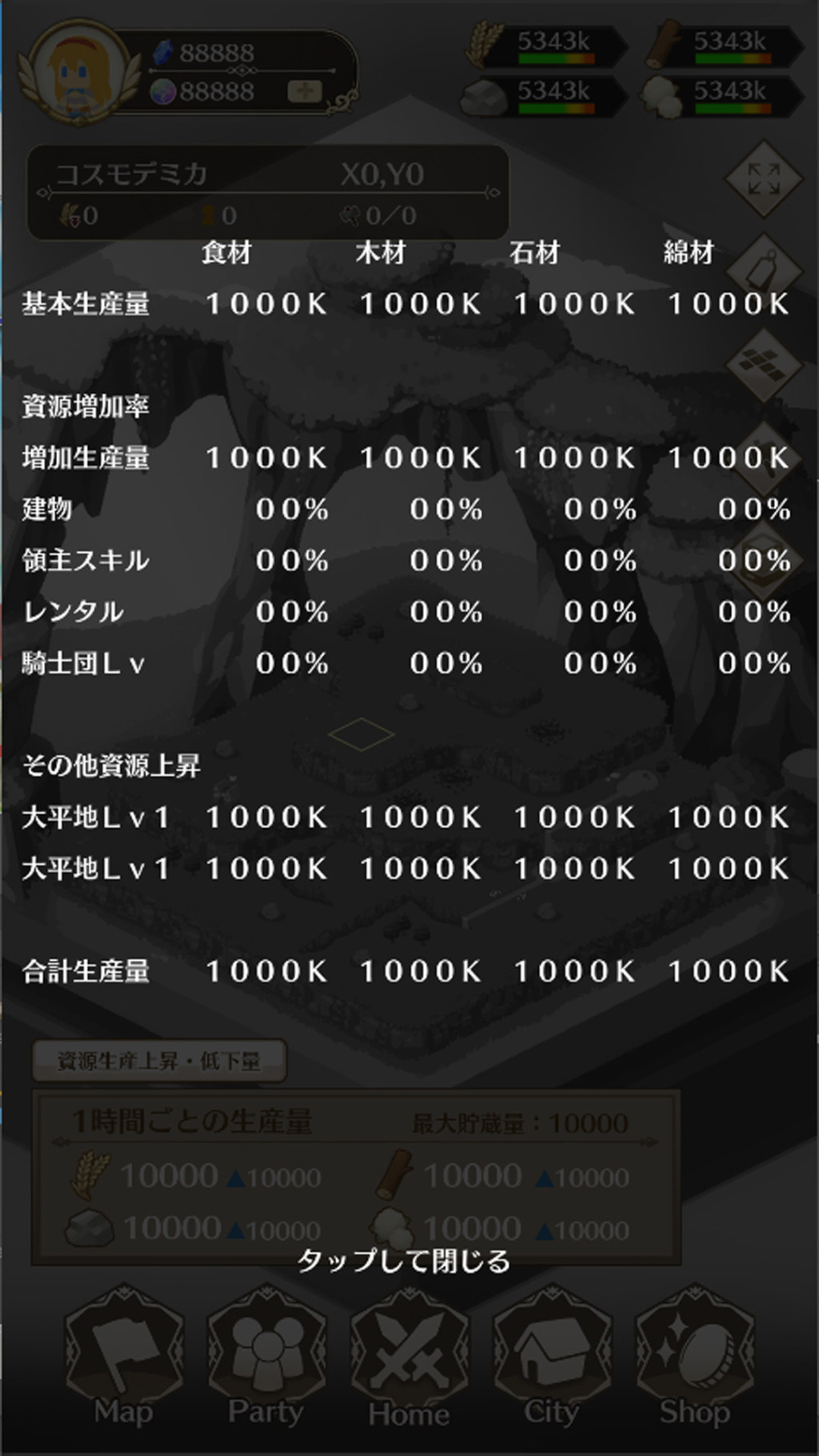 開拓した資源や、建築した建物はLvUPすることでより多くの資源や効果を得ることができます。