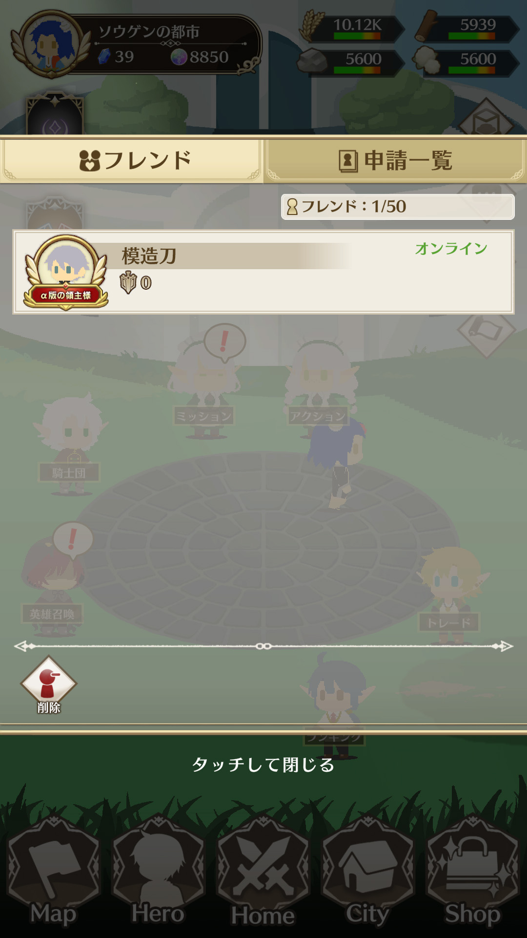 【フレンドリスト】 現在のフレンドを確認したり、フレンドの削除ができます。