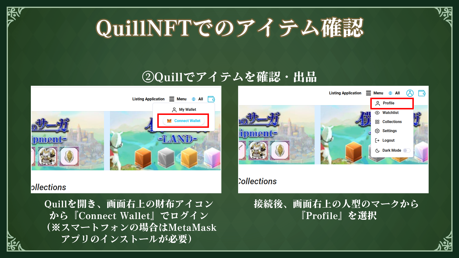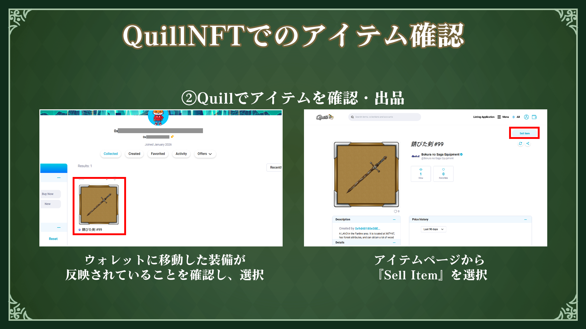 QuillNFTでのアイテム確認方法