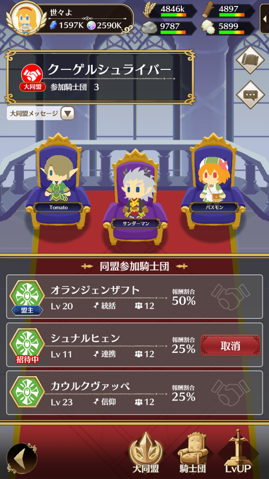 大同盟の報酬は最大3騎士団の報酬の合計から再分配されます。