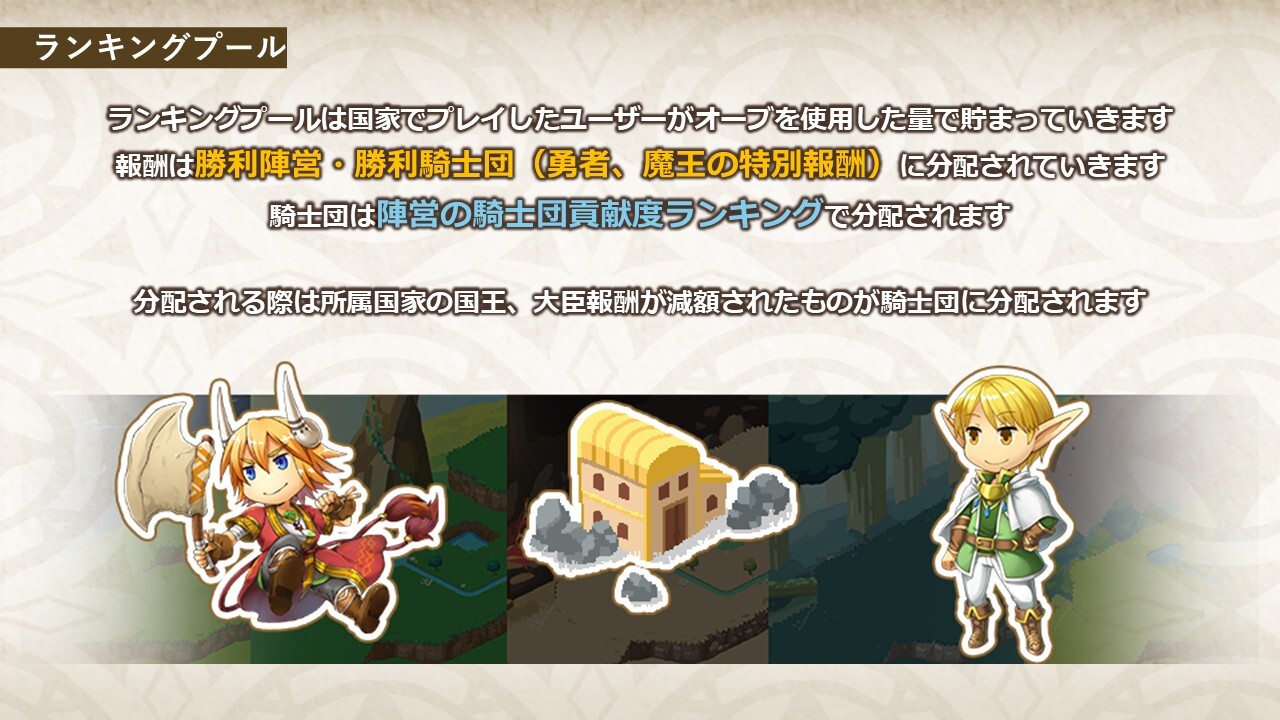 魔王国の勝利ではランキングプールから魔王騎士団、魔王国に報酬が割り振られます。