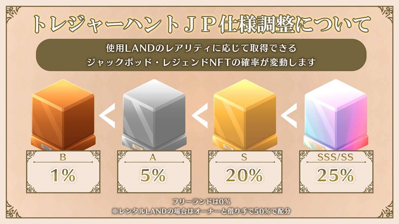 レンタルLANDで獲得した報酬は報酬はオーナーと半分ずつ分配されます。
