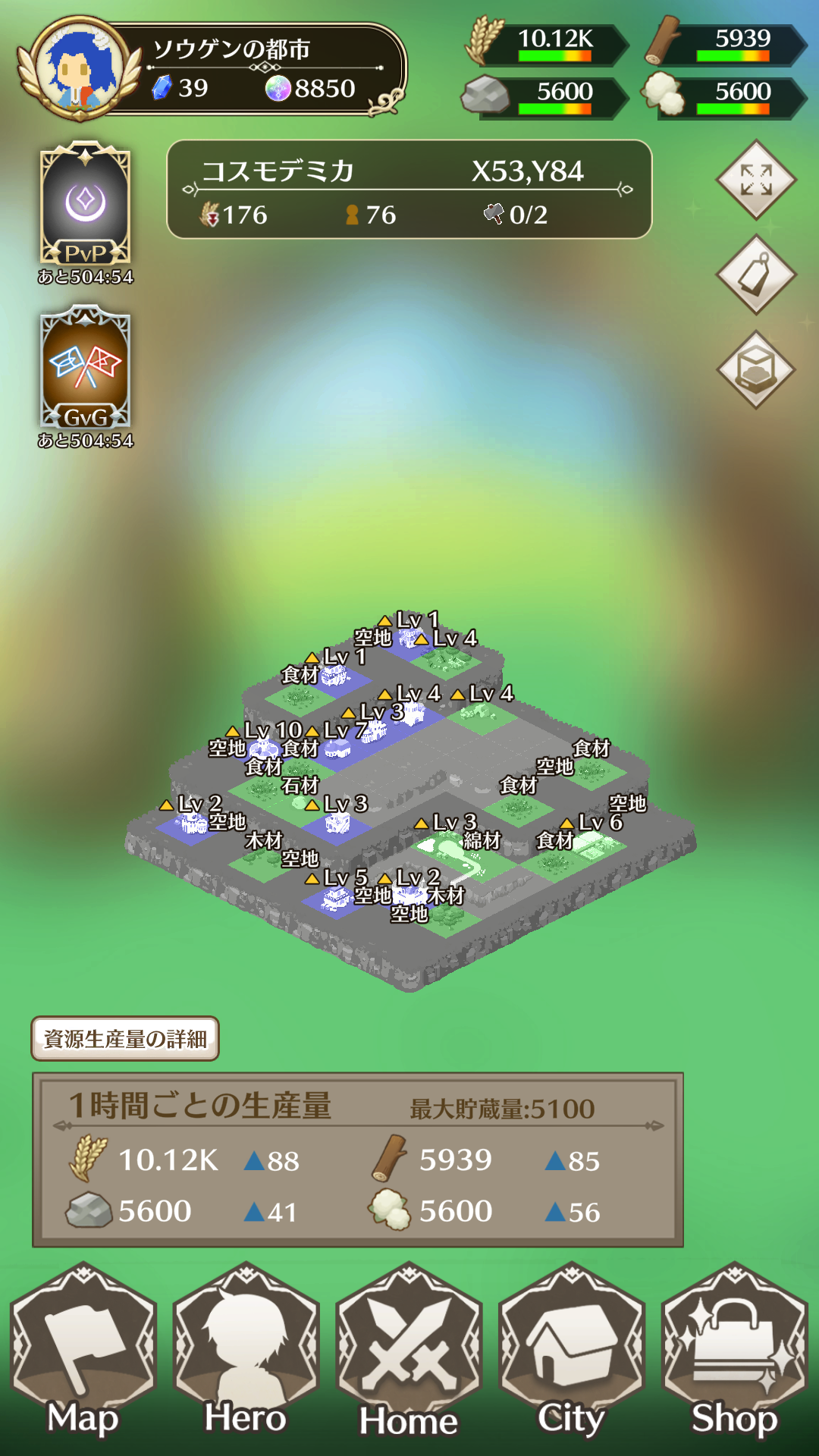 Leveling up cultivated resources and constructed buildings will grant you more resources and effects.