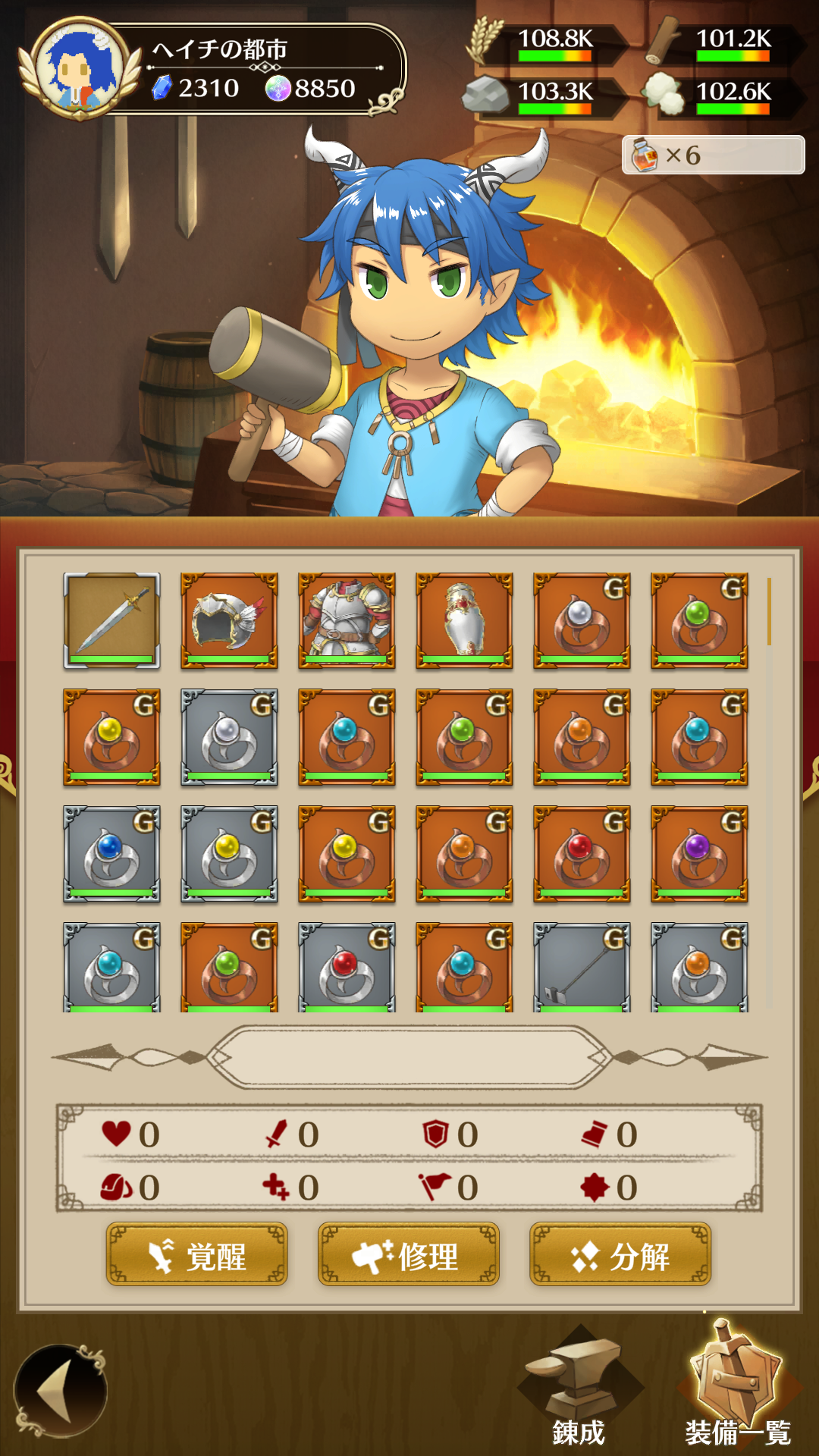 〈Awakening〉 Awaken equipment by selecting the same equipment with the same awakening rate. Awakening increases the equipment's parameters. Awakening requires elements of a suitable rarity and fuel crystals.