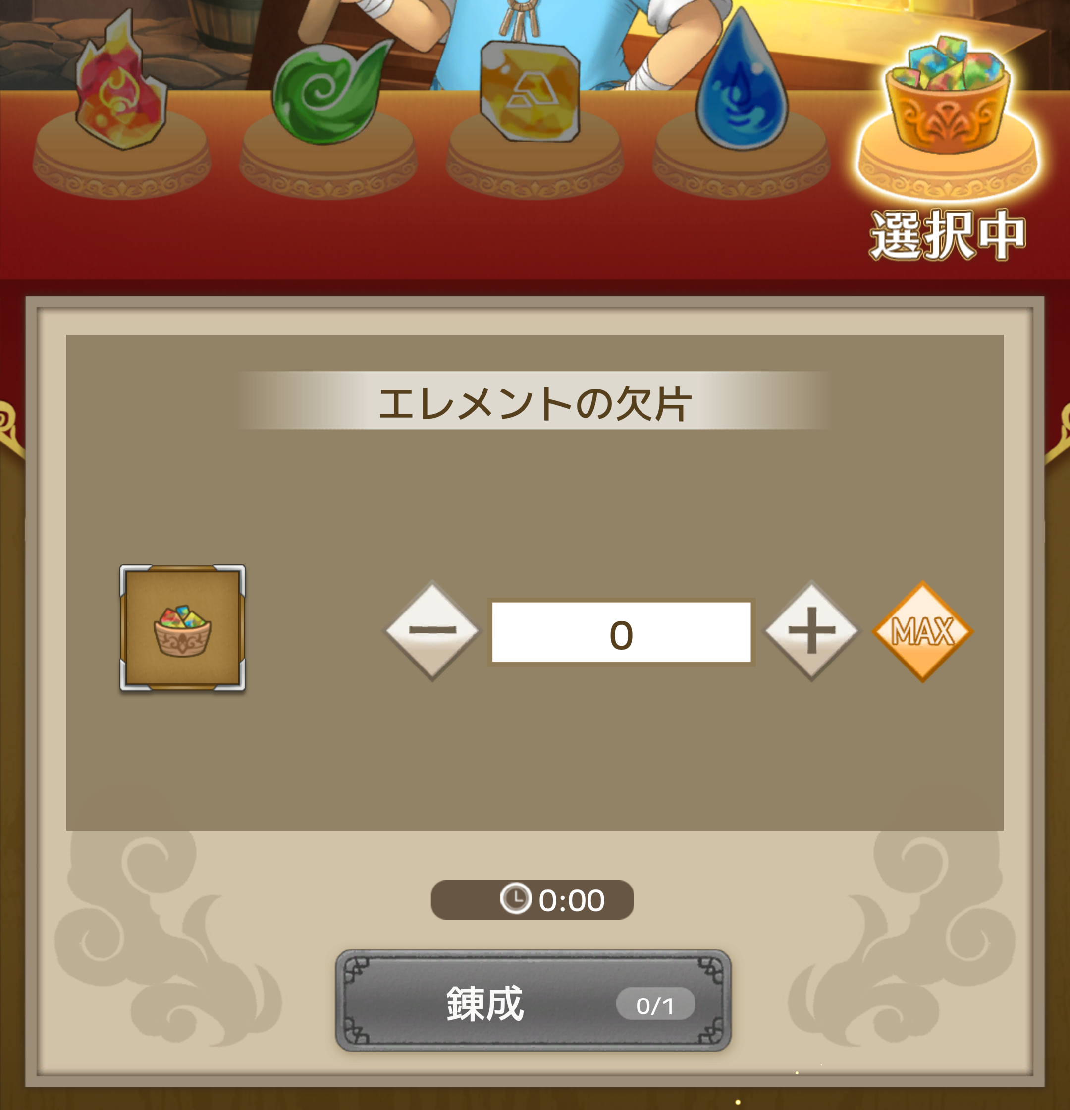 There are four types of Elements: "Fire," "Wind," "Earth," and "Water," as well as "Iron Ore," each with five rarity levels from Normal to Legend.