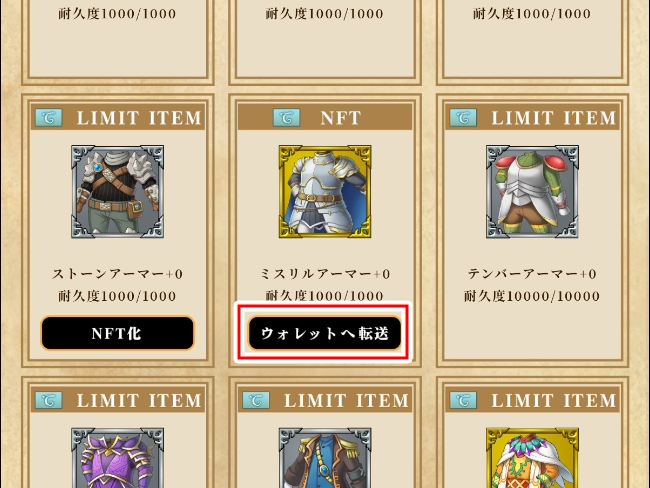 Step 2: Click Transfer to Wallet for the gear you want to transfer.