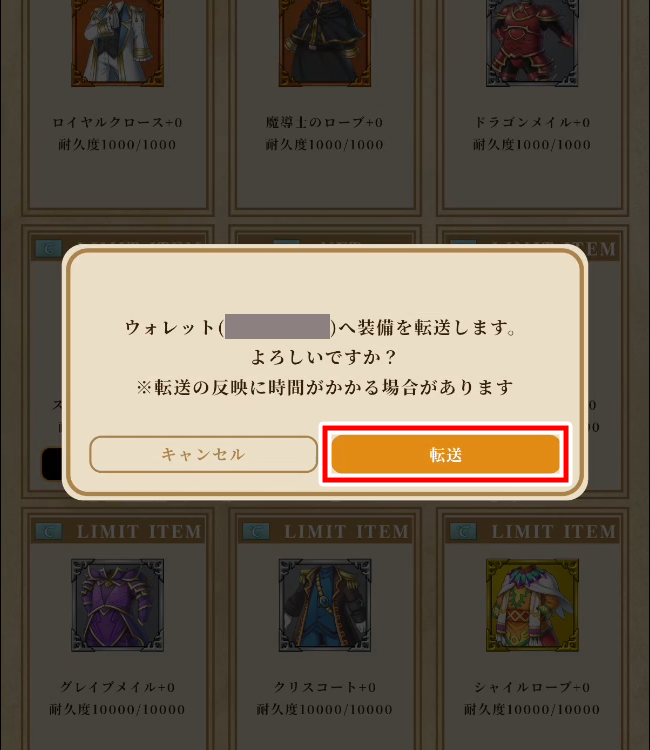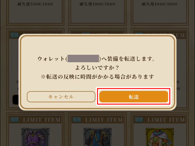 If the equipment you previously clicked "Transfer to Wallet" for is displayed after switching tabs, the transfer was successful.