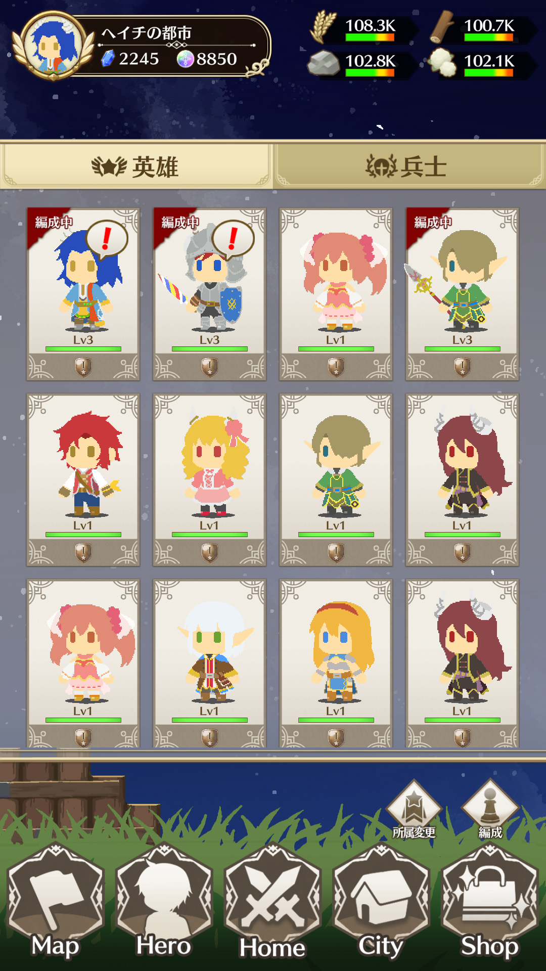 Heroes can be equipped with weapons, helmets, shields, armor, accessories, and troops.