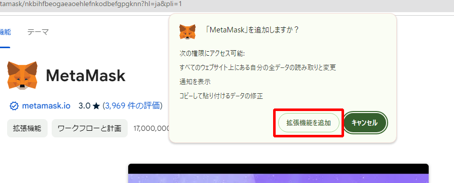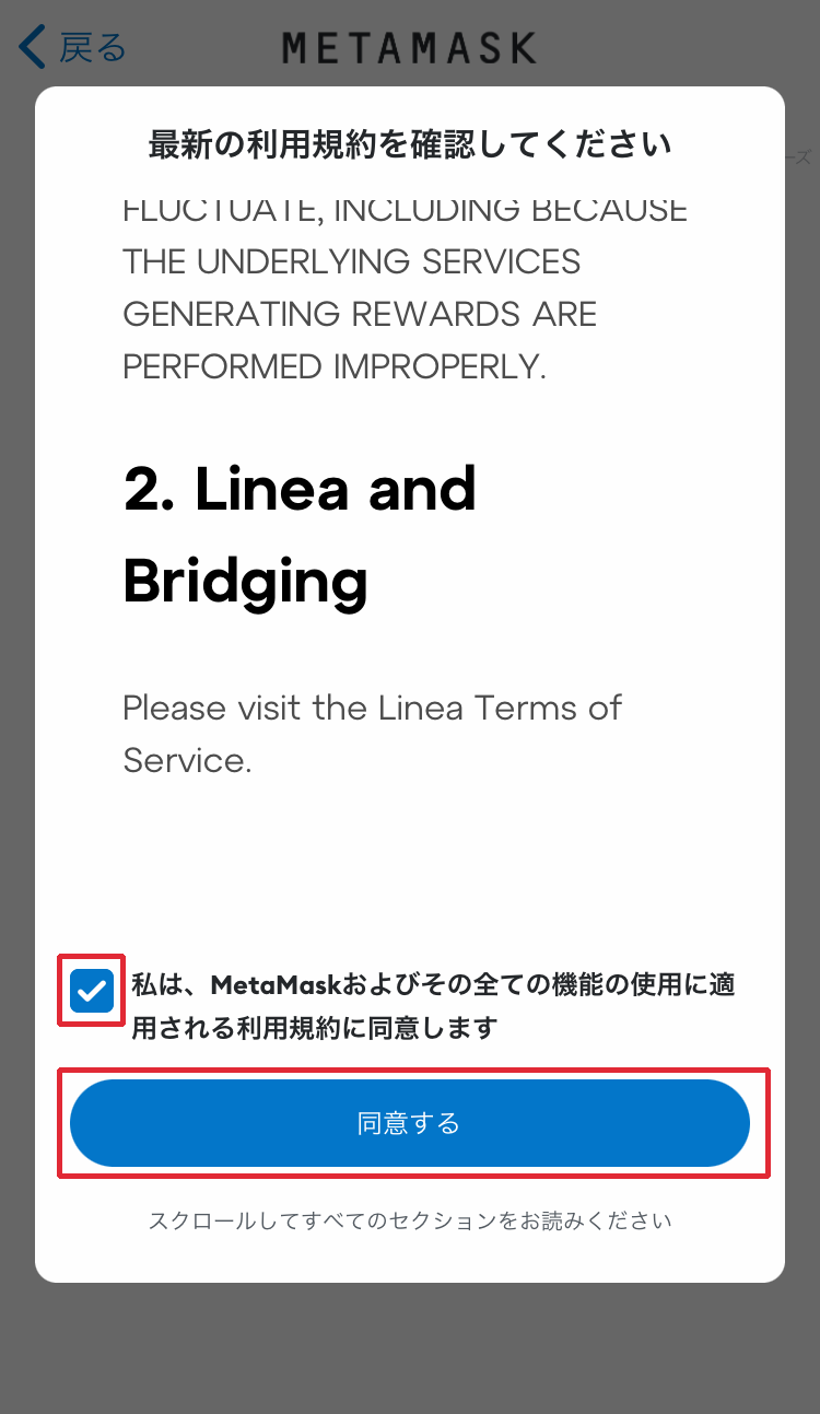 A message stating "MetaMask..." will appear. Scroll down to read the contents.