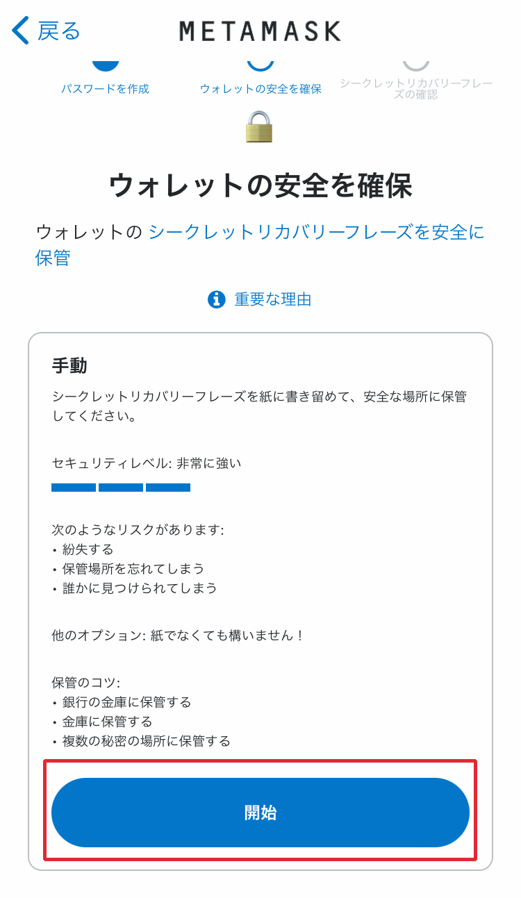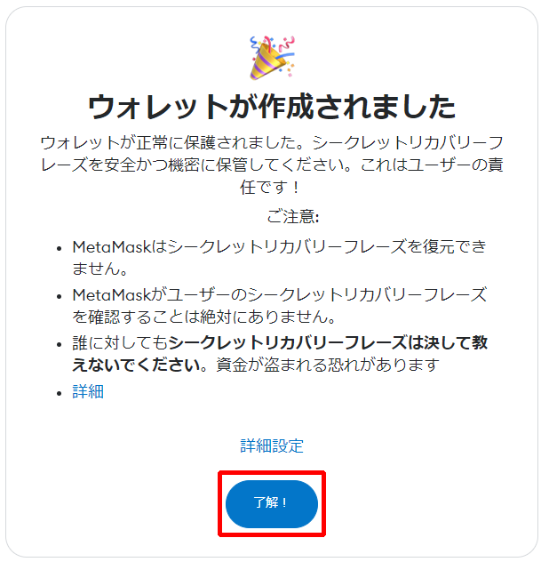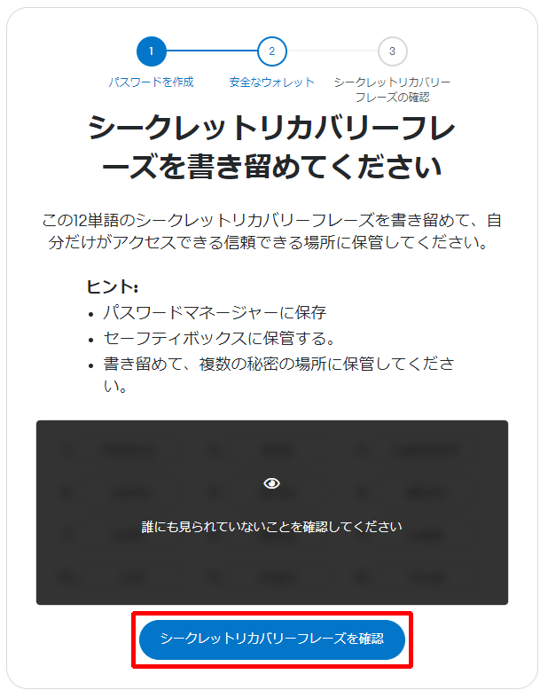 ※If a third party learns this phrase, anyone can access your wallet, so be sure to keep it secret.