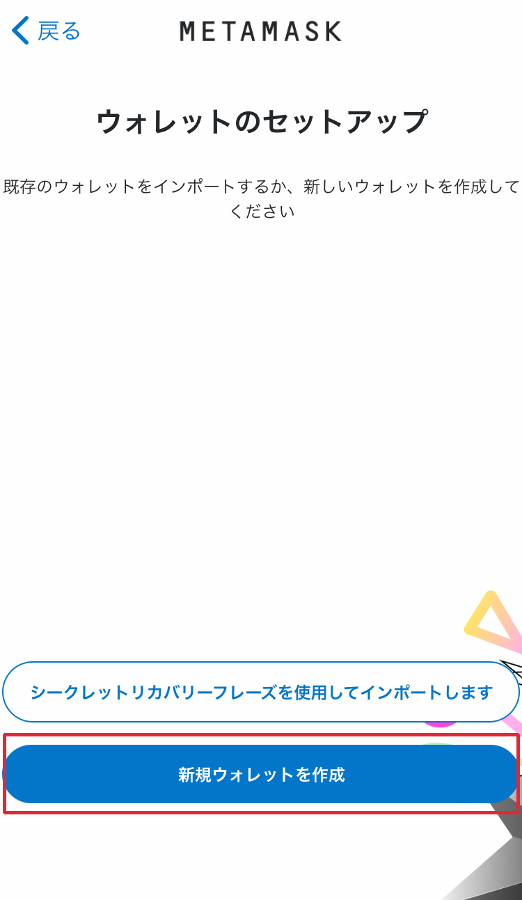 *This section explains how to create a MetaMask for the first time on your smartphone.