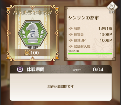 - At the end of the battle, the opponent's official residence's remaining durability is 50% or less.