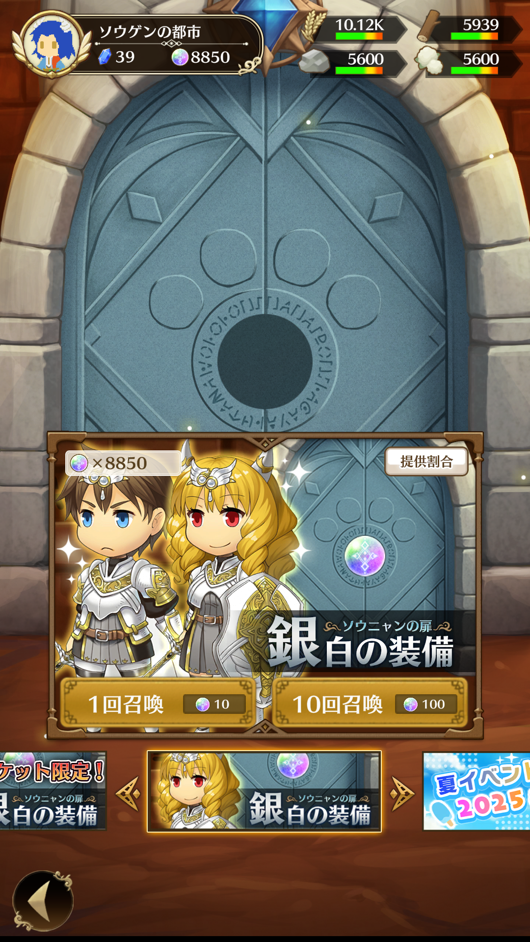 This gacha can be played using orbs, Nikumaru Coins, and equipment gacha tickets.