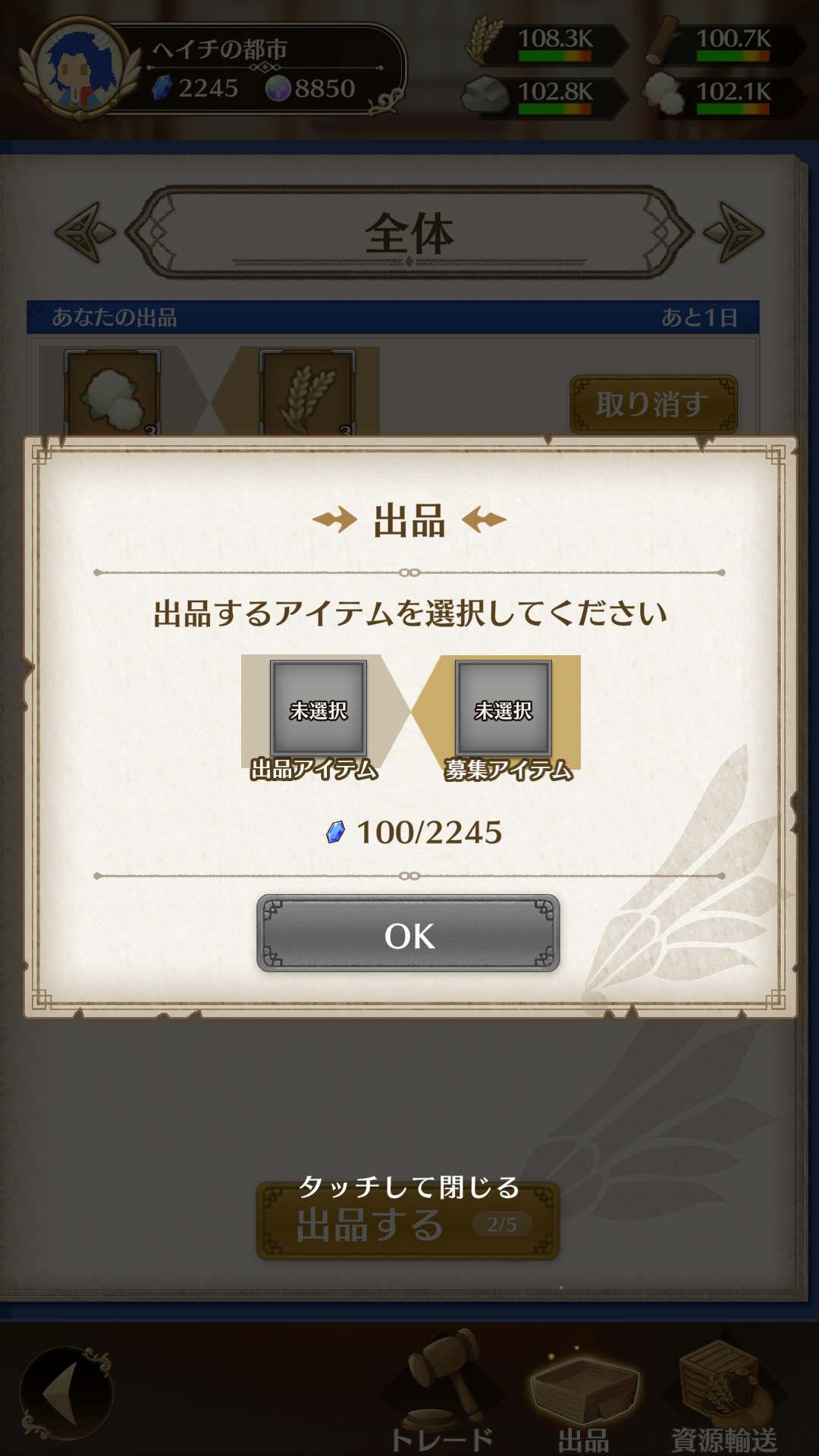 This feature allows you to trade items with other users and transport resources to your own or other users' territories.