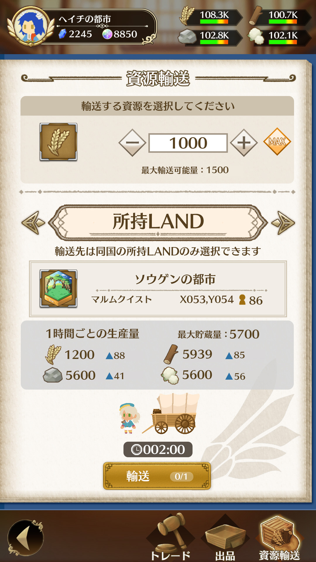 〈Resource Transfer to Owned LANDS〉You can transfer resources to LANDS you own within the same country.