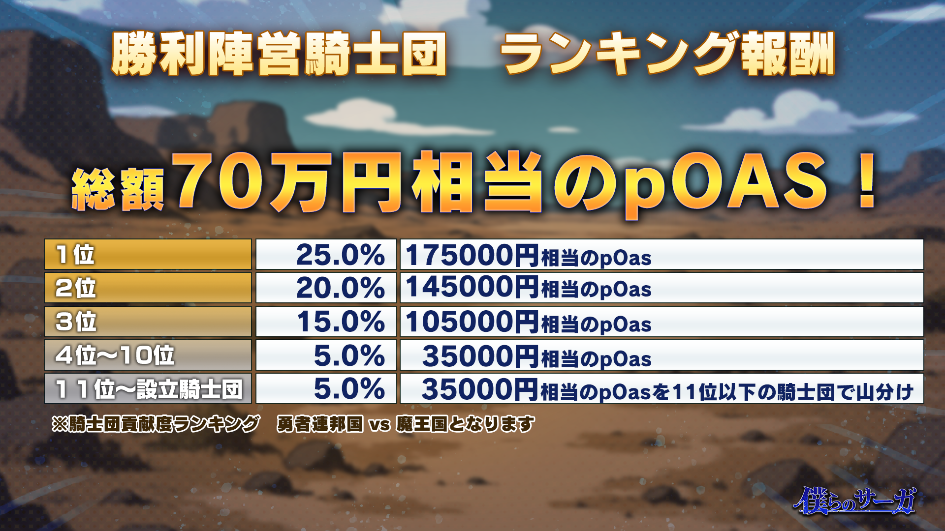 また、勝利陣営の騎士団には総額70万円相当のpOASを分配!