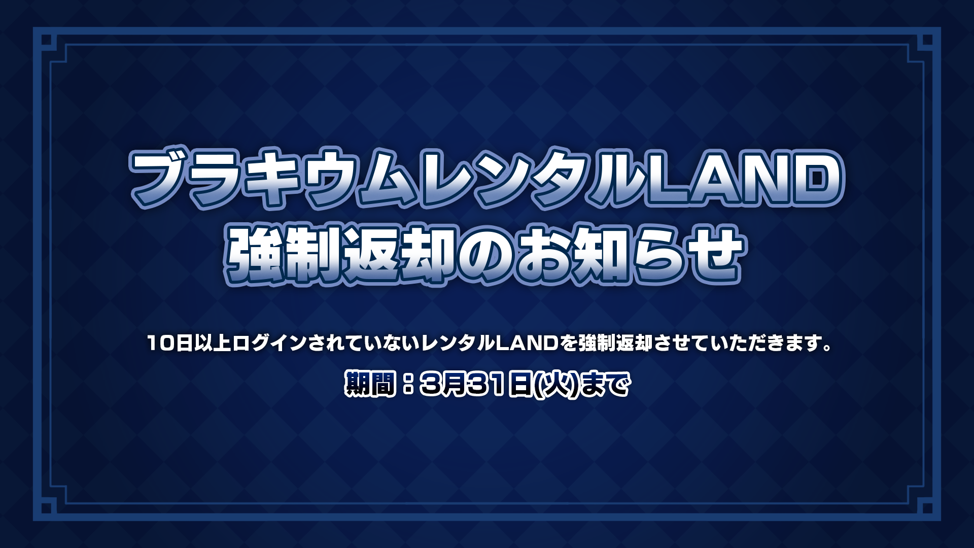 ブラキウムレンタルLAND強制返却のお知らせ