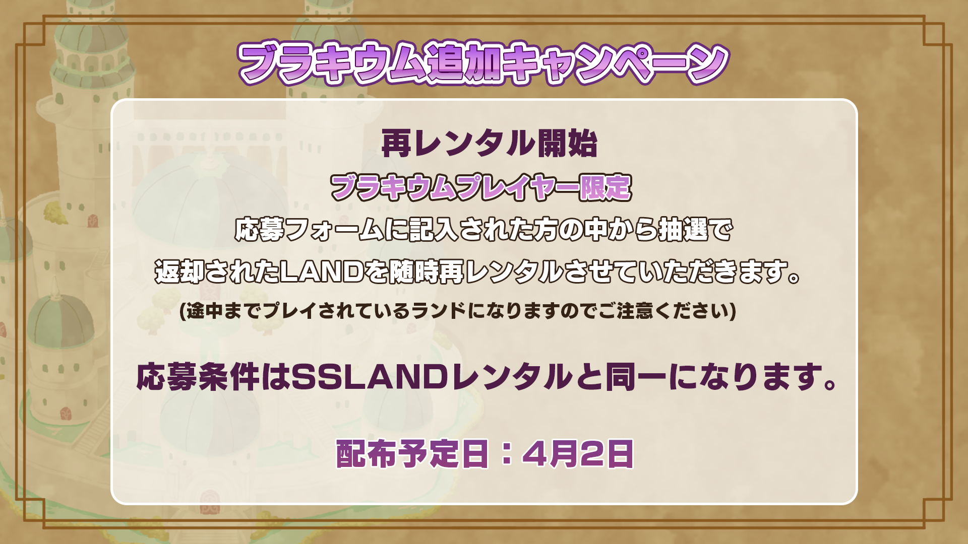 ブラキウムレンタルLANDについてのお知らせ
