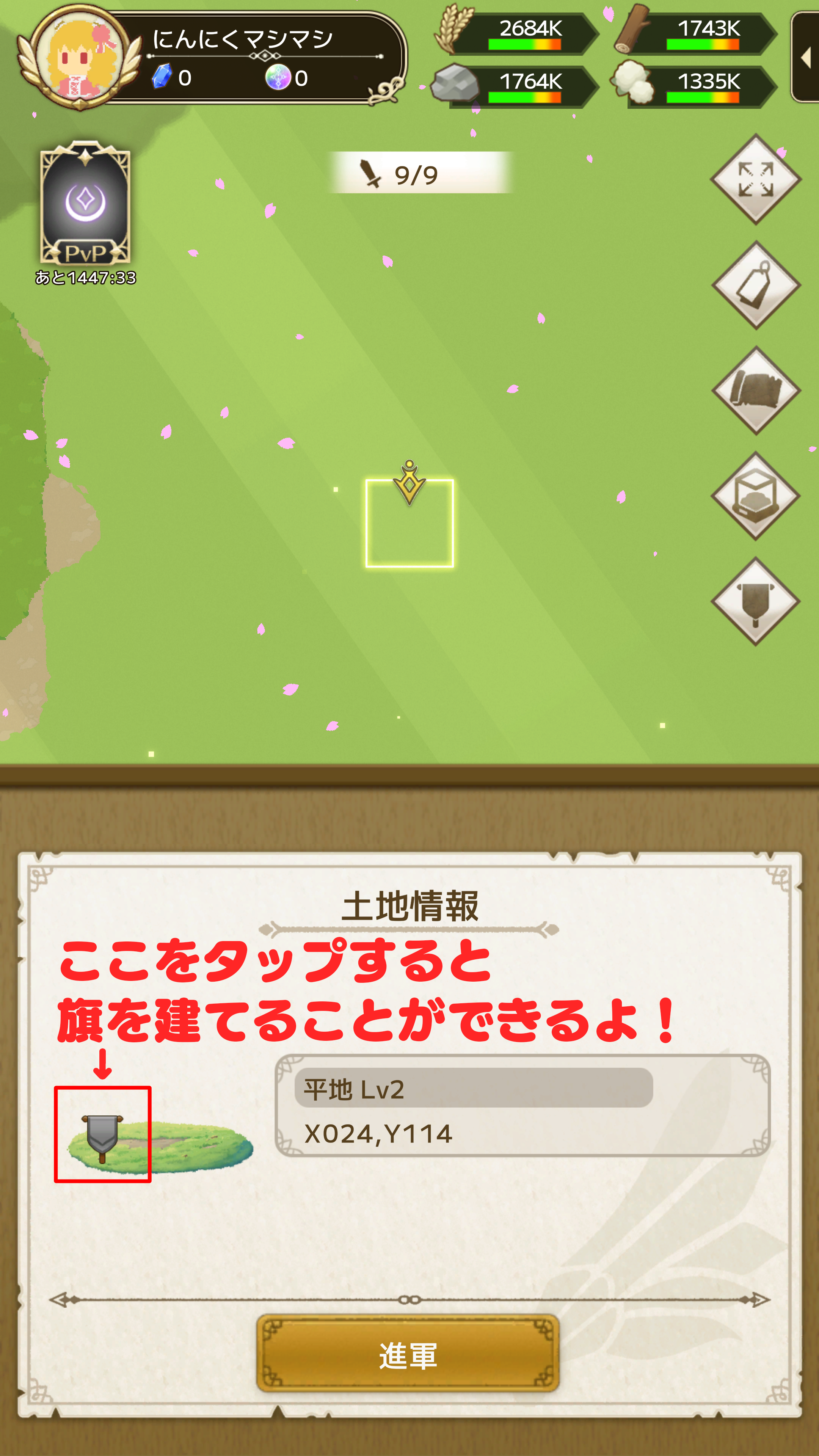 マップ上で正解の座標の土地を選択して画像の部分から旗を立ててみてください
